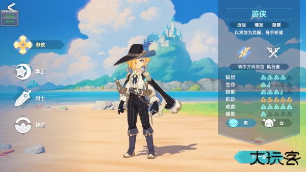 游侠:近战物理输出职业。以双剑为武器,机动性高,爆发高。上手难度:5颗星。
