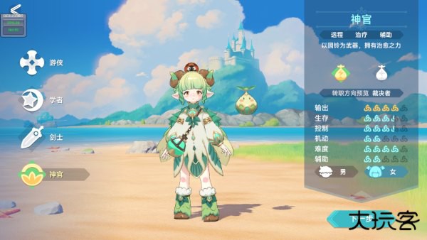 神官:远程法术辅助职业。以圆铃为武器,可以为队友提供治疗。上手难度:4颗星。