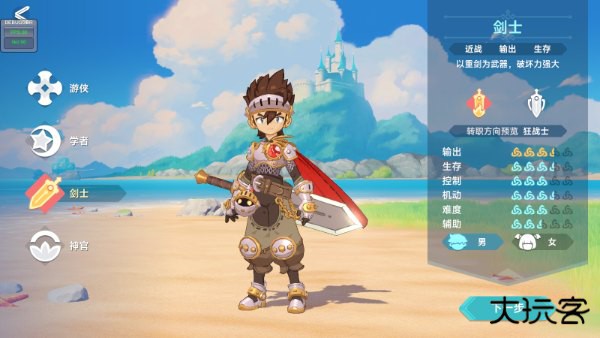 剑士:近战物理坦克职业。以重剑为武器,生存能力强,高血量,高防御,挑战副本必备职业。上手难度:2颗星。